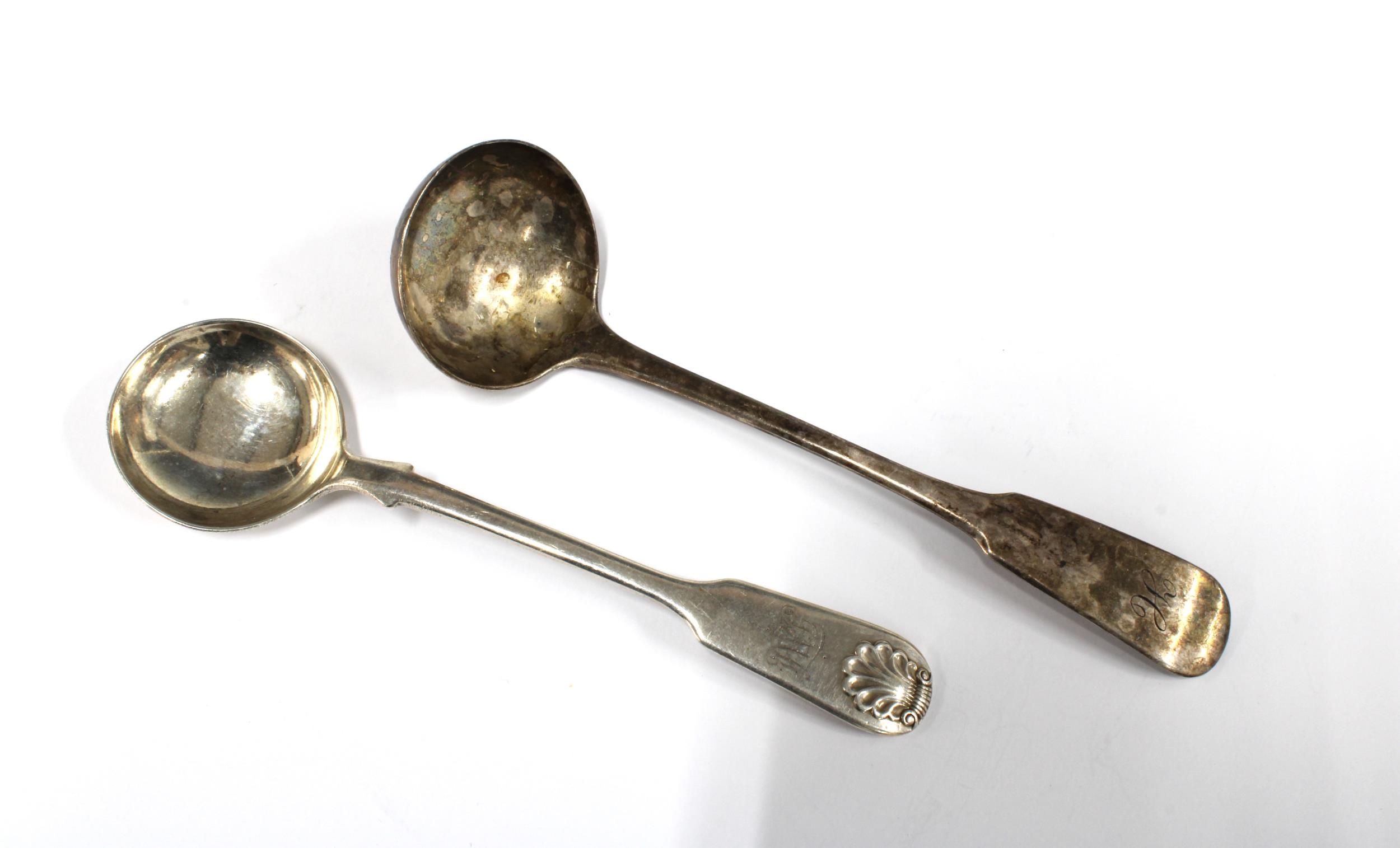 George IV silver toddy ladle, Edinburgh 1824 & a Victorian silver spoon, Queens pattern, Edinburgh 1879 (2)