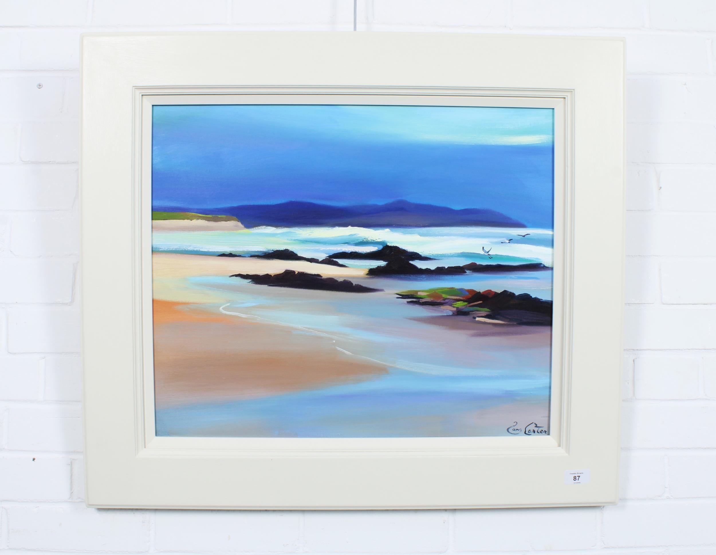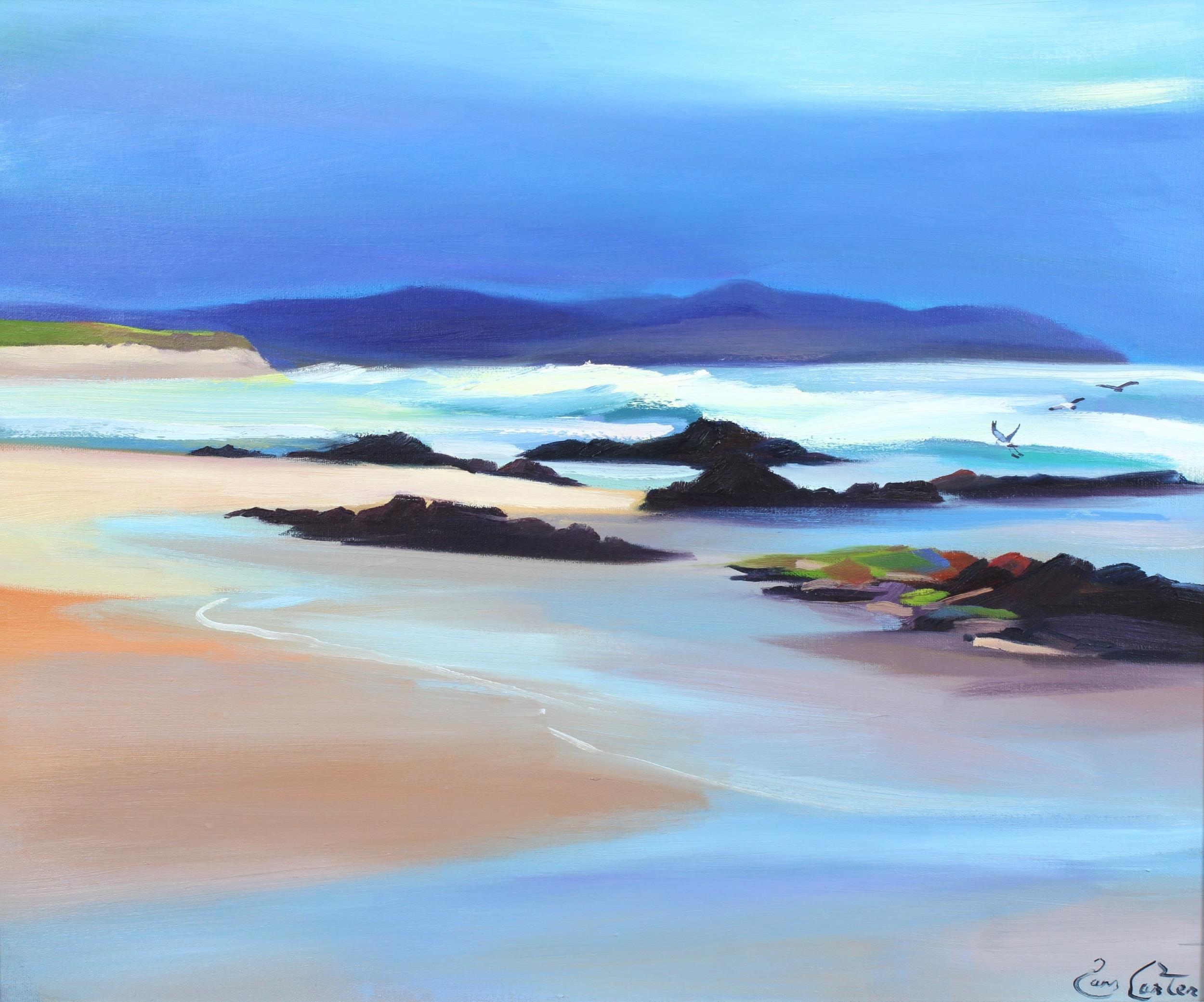 PAM CARTER (SCOTTISH 1952-2022) MACHRIHANISH SURGE oil on canvas, signed and framed, 60 x 51cm, label verso