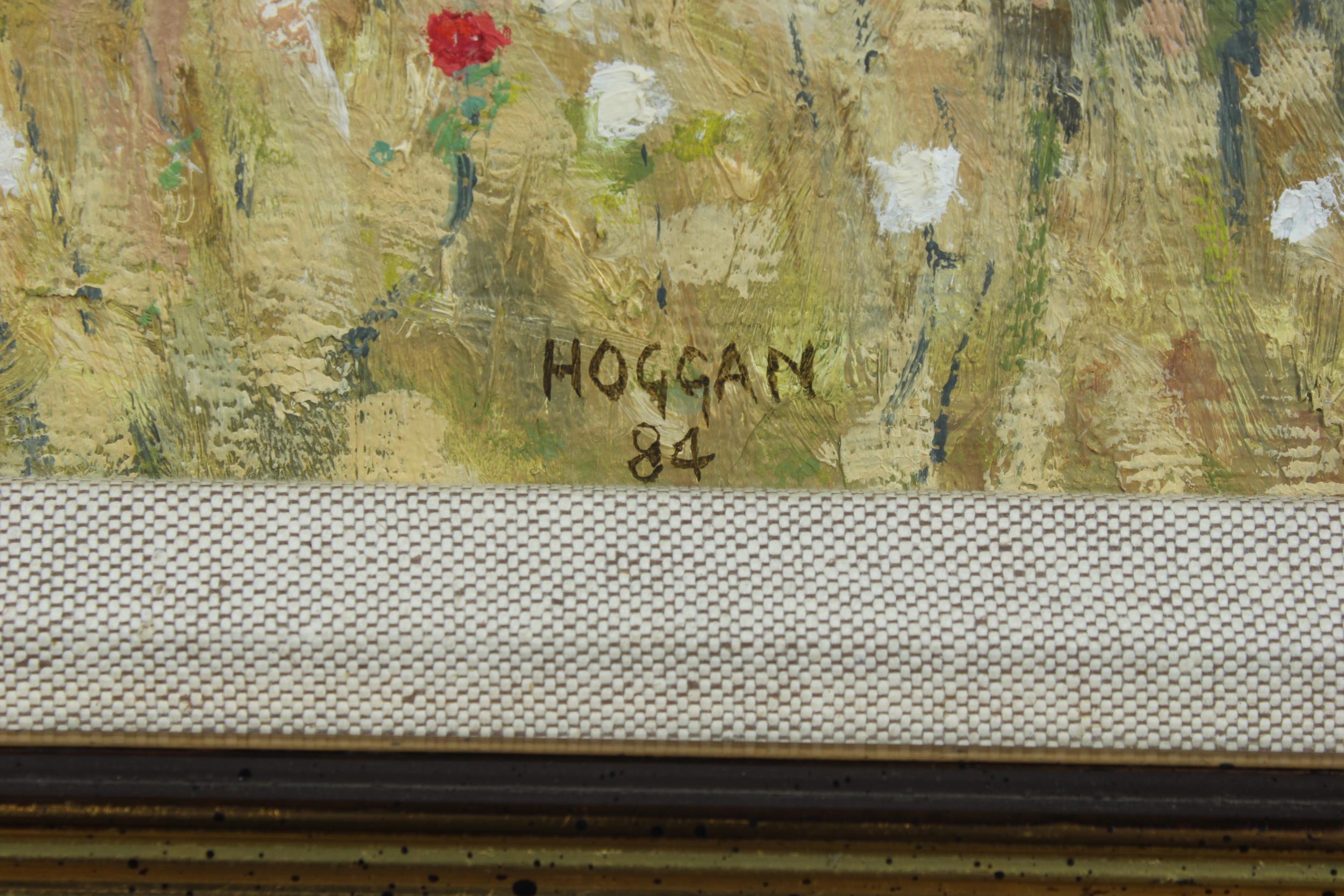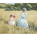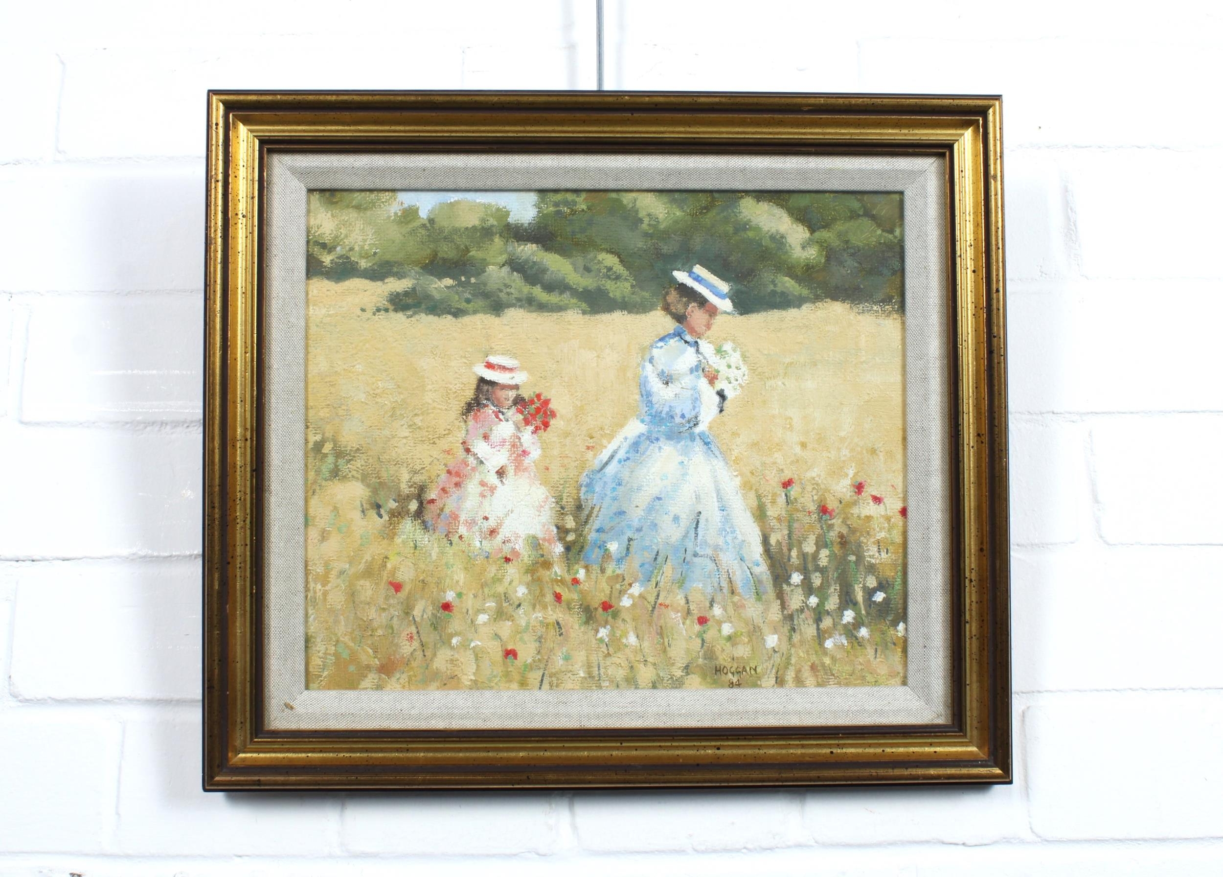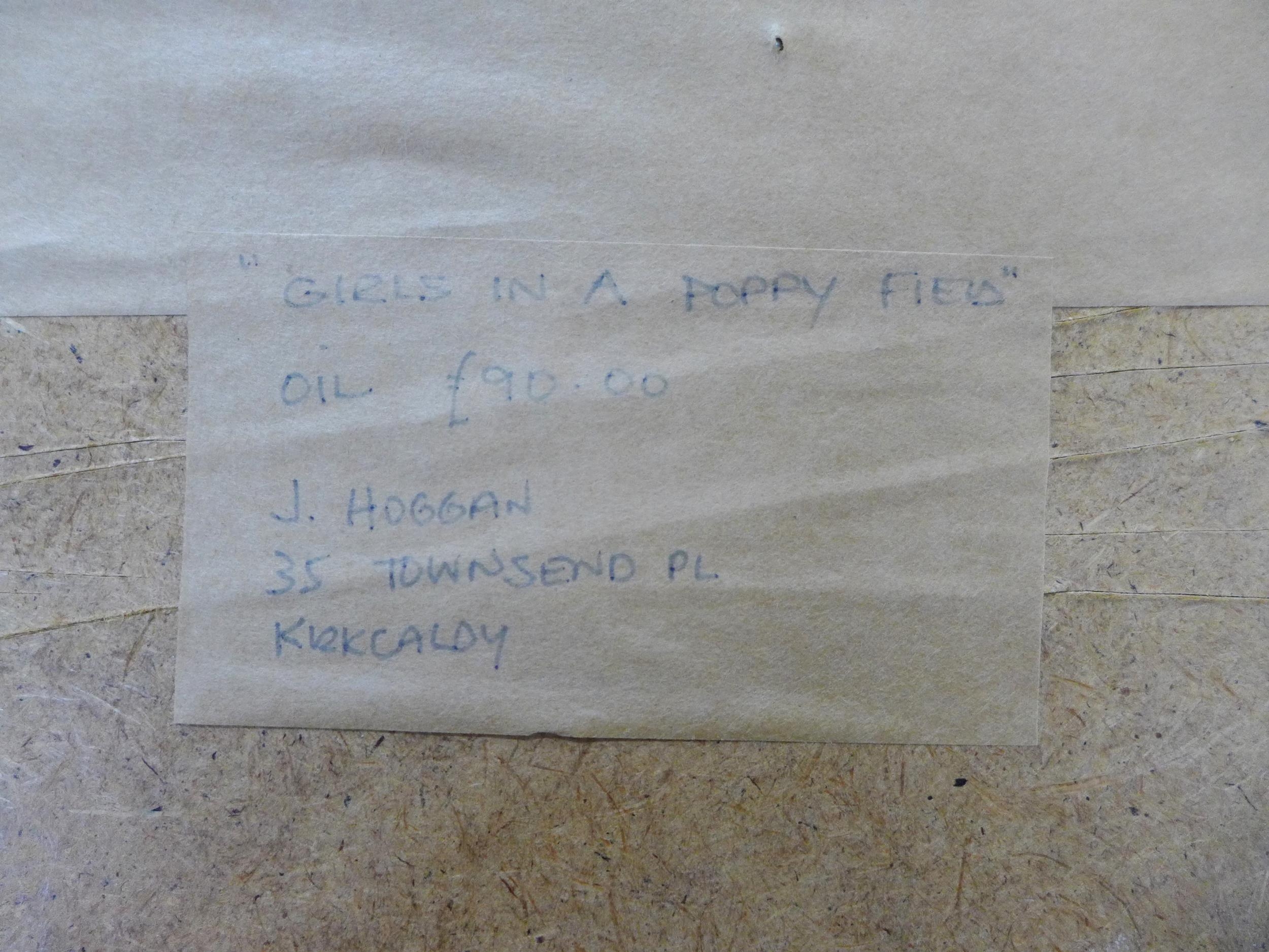 JACK HOGGAN (JACK VETTRIANO OBE) (SCOTTISH 1951 - 2025), GIRLS IN A POPPY FIELD, oil on board, signed and dated 84, framed under glass, labelled verso, 30 x 24cm